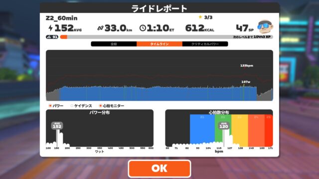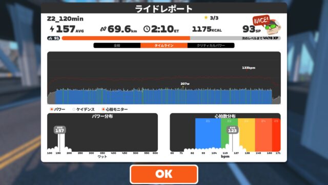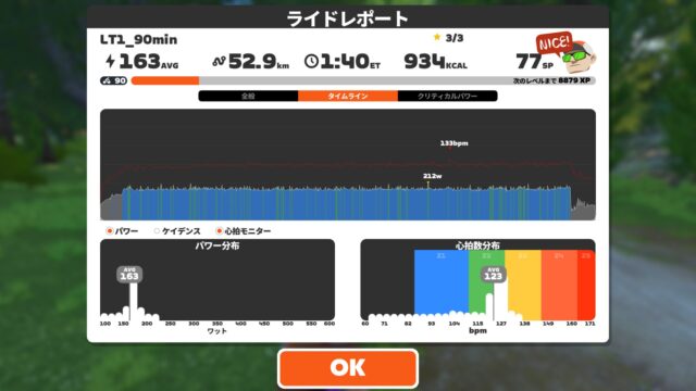 ルート、サドル角などすべて先週と同じ。前回腰の様子が中盤以降良くなったので、その再現を早めたい。