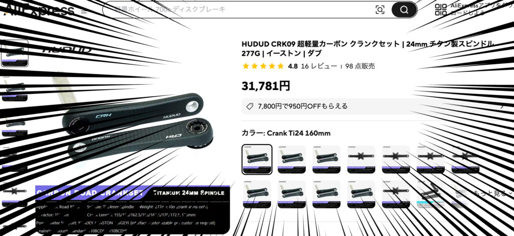 【軽量化シリーズ】3万円台前半で277gの超軽量クランク!?HUDUD CRK09!!