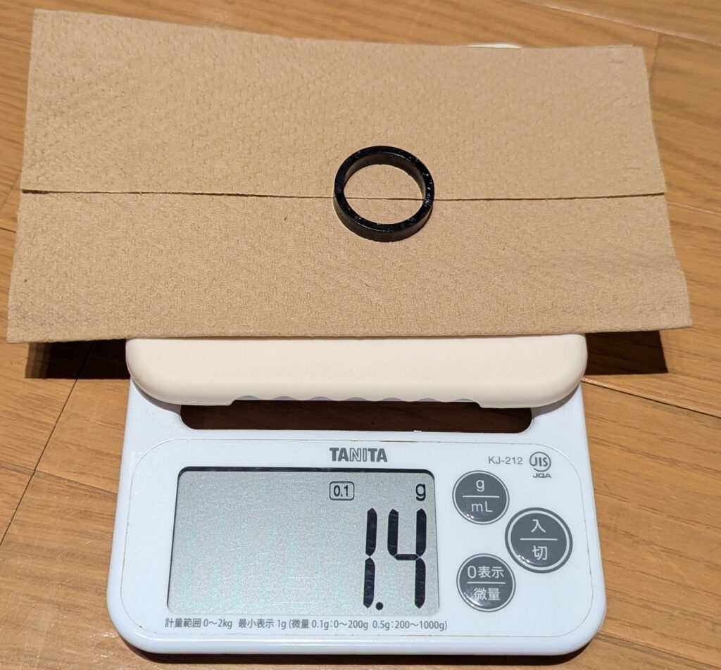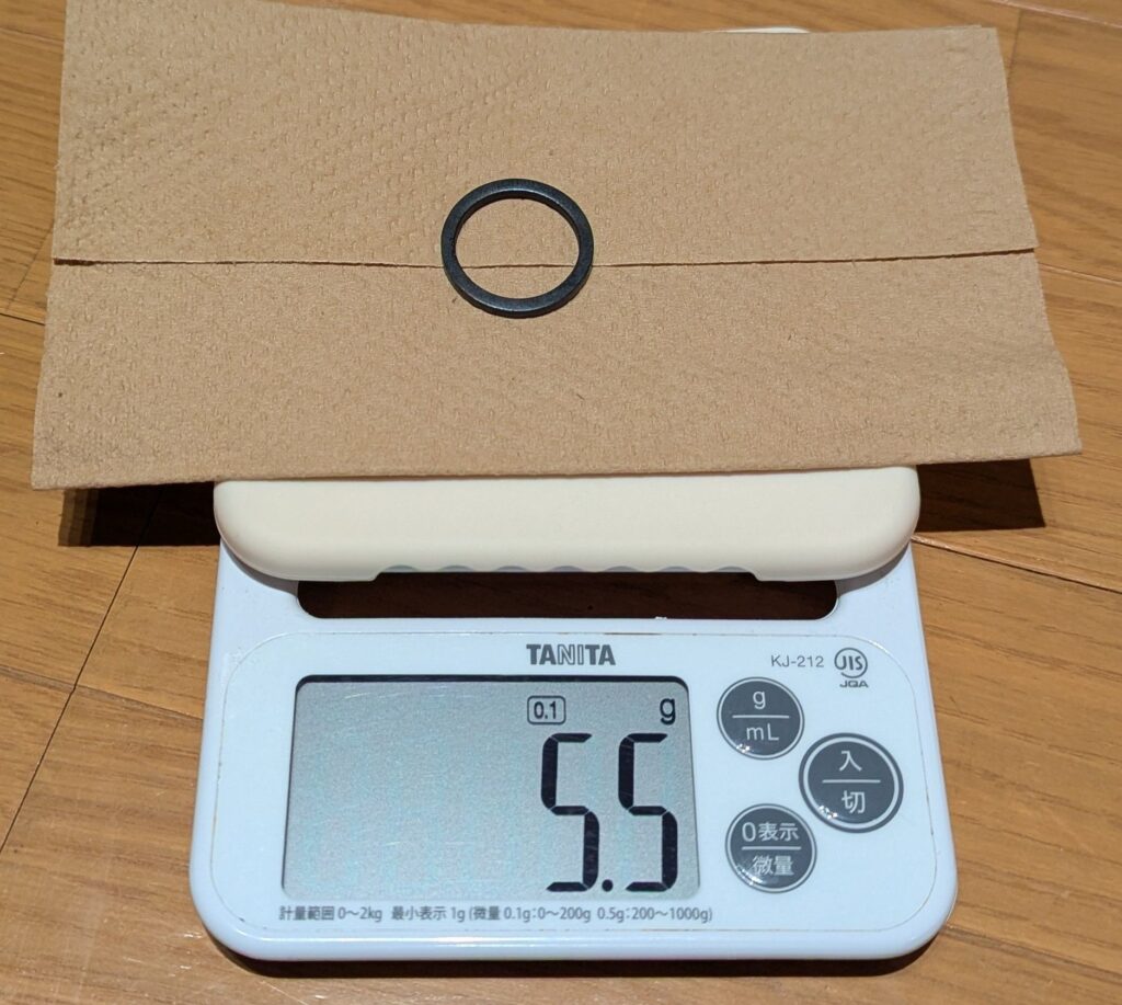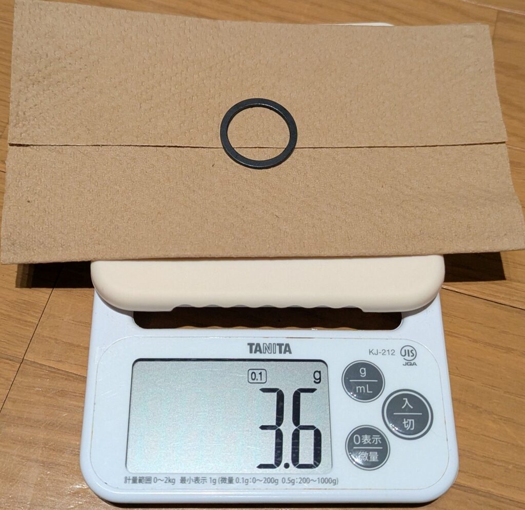 例えば私の手持ちのスペーサーは外径29mmの1mm+2mmで1.6gだった。こういうのはいくつか持っておくと助かる。