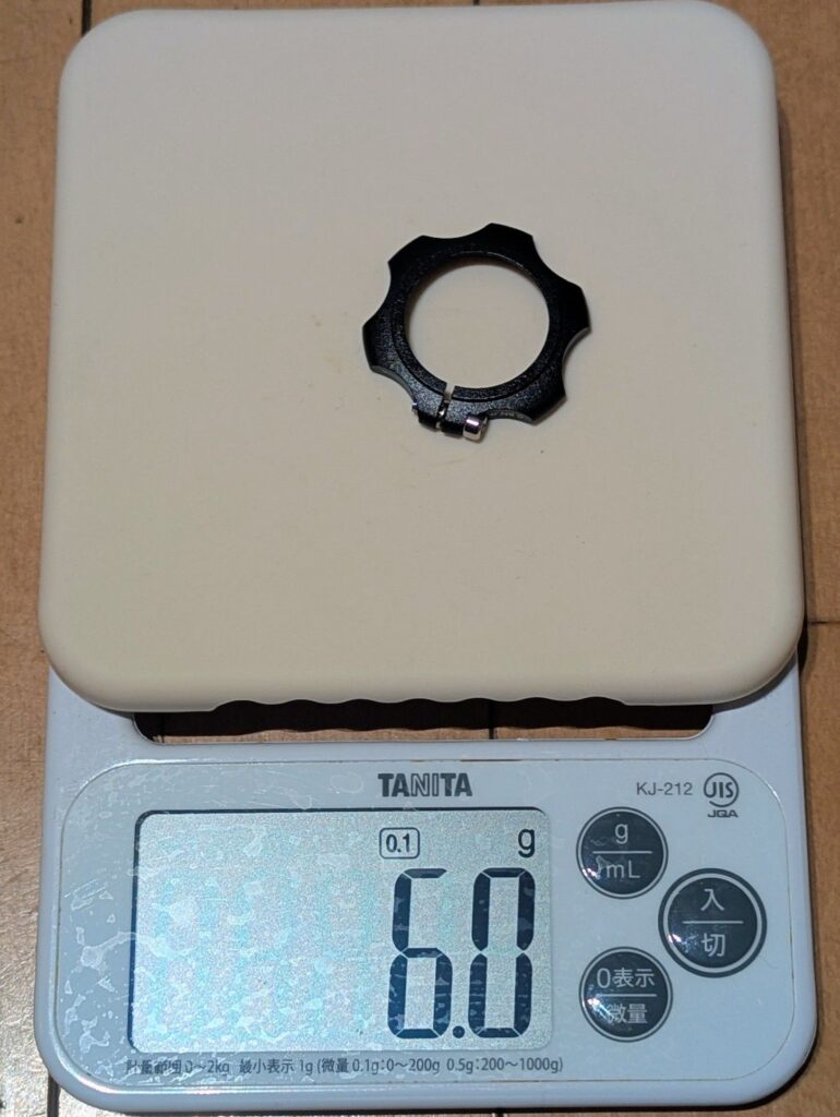 社外品でもアリエクにいくつか出てると思うけど10g前後だったので軽い部類だと思う。