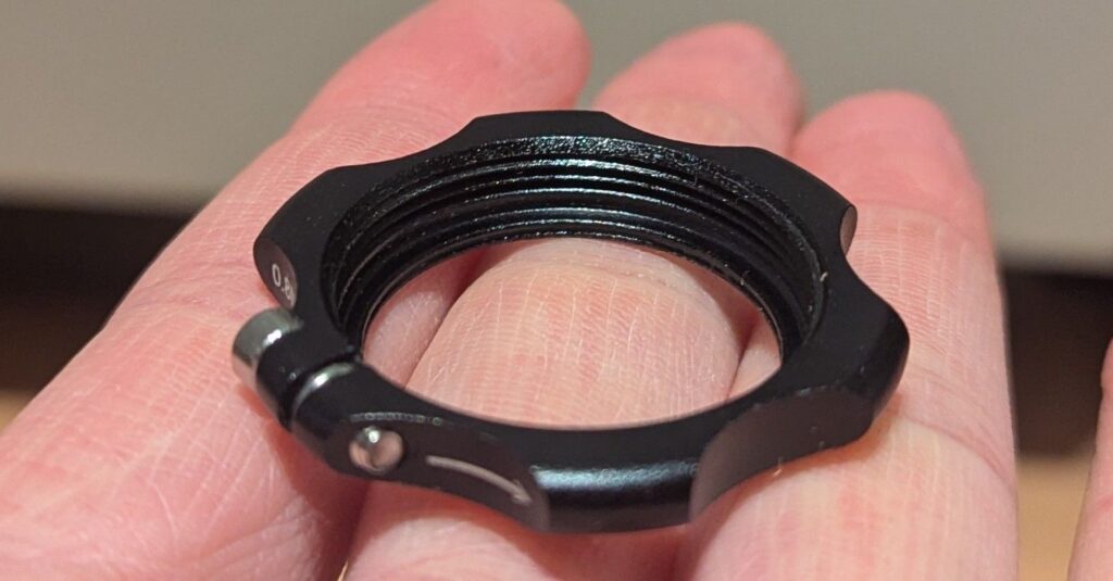 プリロードアジャスター。内側にねじ切りがしてある。外形寸法は29mm。