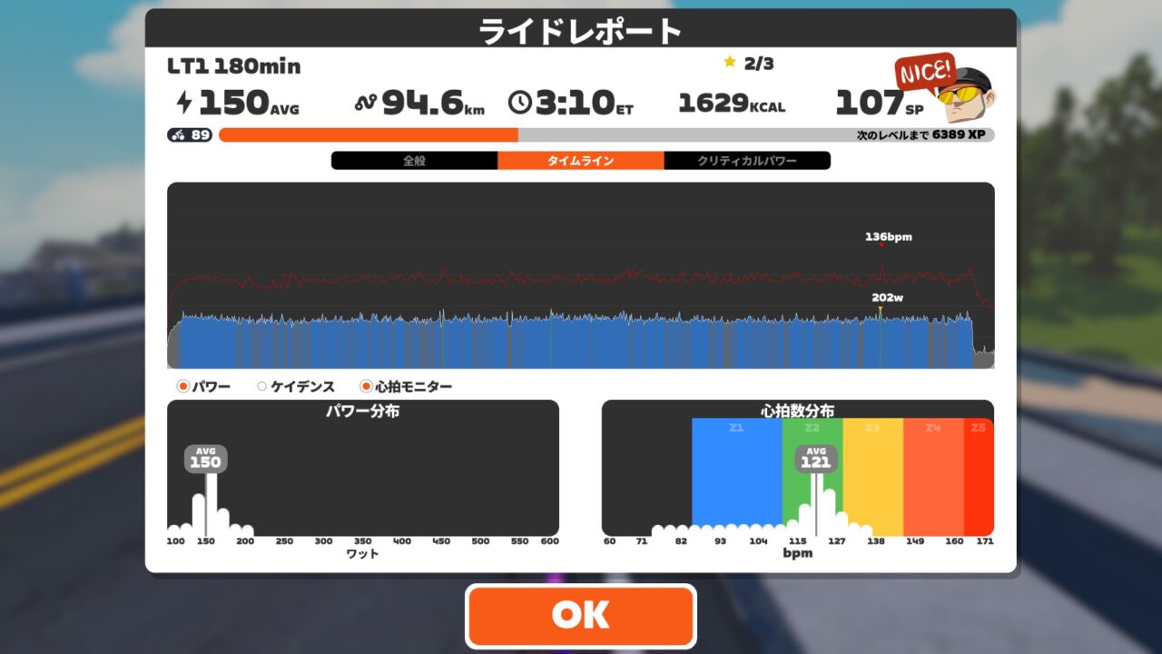 本日長めなのでいつもの心拍120〜125くらいに対してMAX120くらいを心がける。