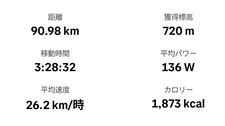 しかし大きくも外れてなかったようで、423号の登りでメタメタになることはなくZ2の感覚でヒョコヒョコ登れた。心拍140行ってたけどそれは知らない。