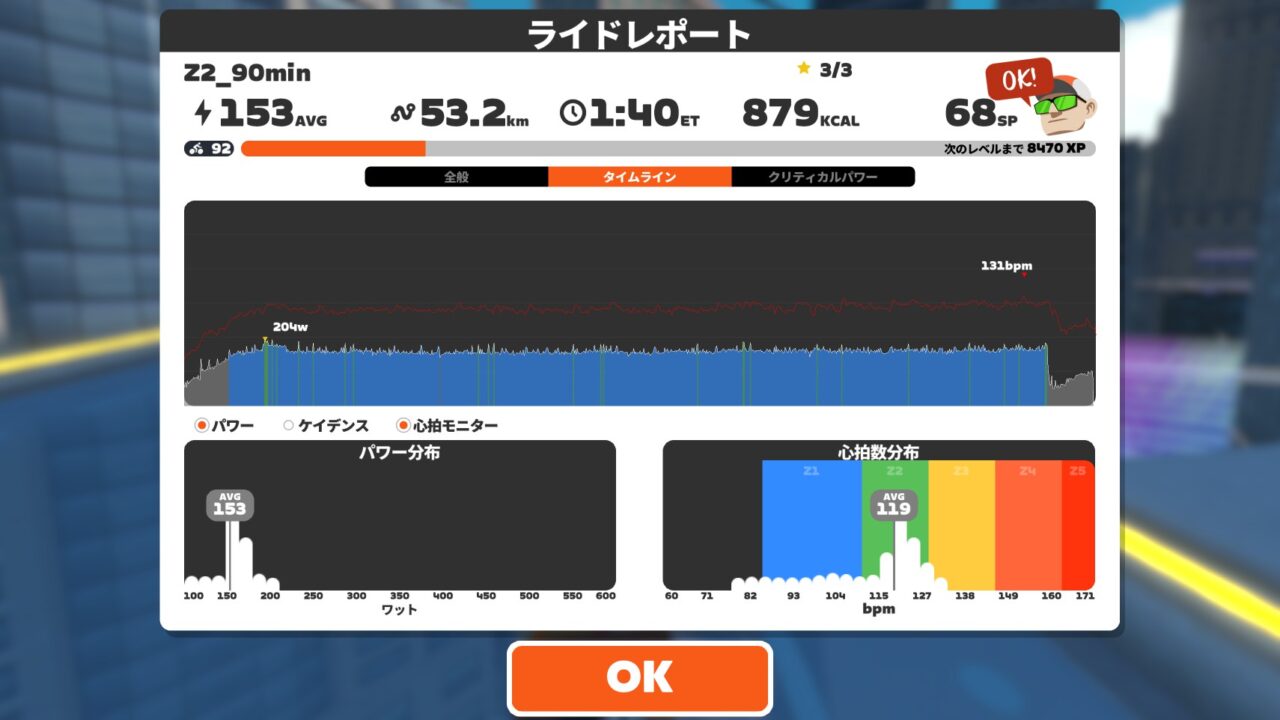 まぁ起きて15分後にはライド開始だから上がらないのは仕方ないところもある。