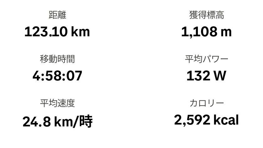 前半70km、後半50kmでお昼ごはん食べてたので実質2部練。まぁヨシ。