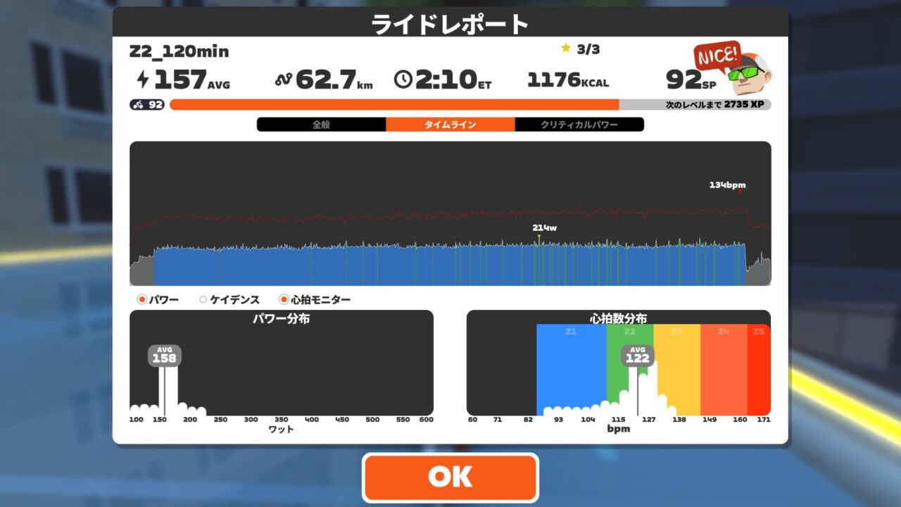 でも心拍が120まで上がるのにちょっと時間がかかってる気がする。