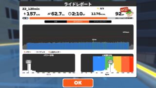 前回は「踏まないと維持が辛い」に対して今回は「特に考えなくてもパワー出てる」なのでRPEが結構違う。