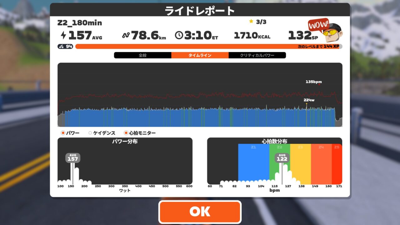 ケイデンスは85〜90程度で推移。普段だと若干押す感じがあったけど85であっても違和感がなかった。