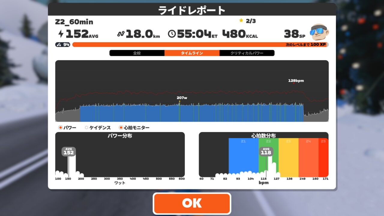 RPEとしては普段のZ2が3としたら2。まぁ時間が短い分当然だけど、特段のしんどさや心拍が変ということはなかった。