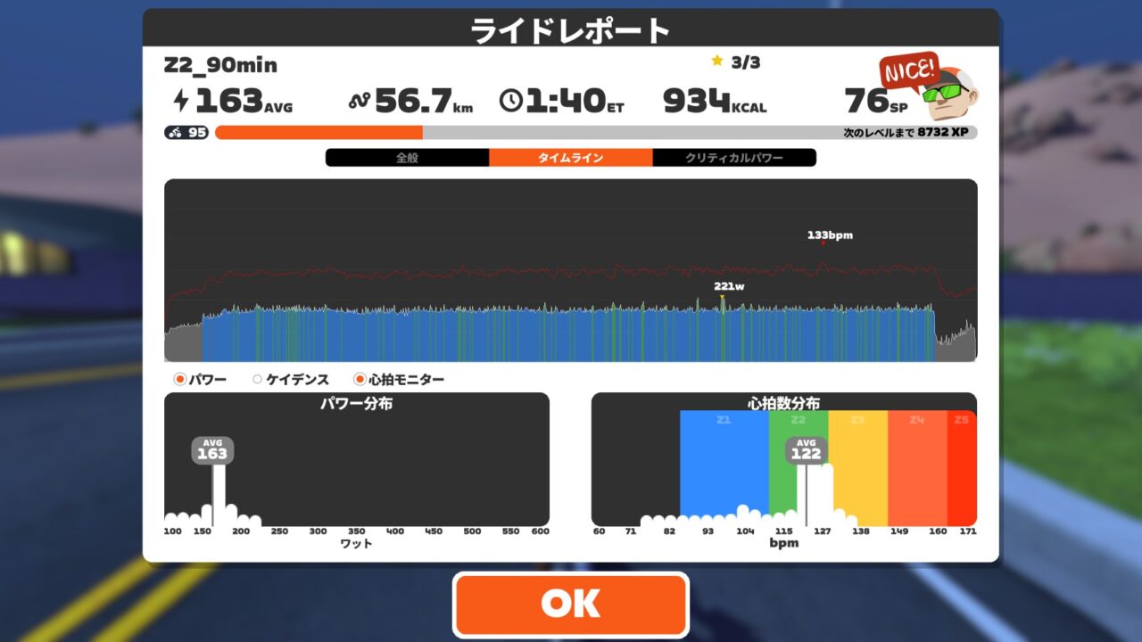 終始変化無く90分。120分まで行こうかと思ったけど、レスト週だからこれで十分。