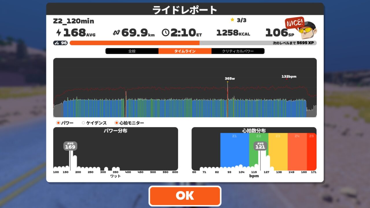 気持ちよく脚が周って最後まで。若干心拍高く乗ってしまったかもしれないけれど大丈夫だろう。