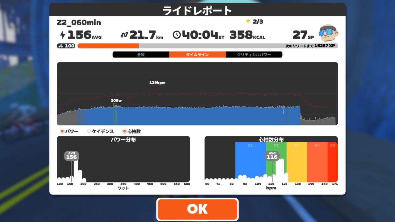 Z2の効果から考えて1時間程度はやっても大した恩恵は受けれなさそうだし、それなりに整ったので30分で切り上げ。頑張るのは来週からで良い。